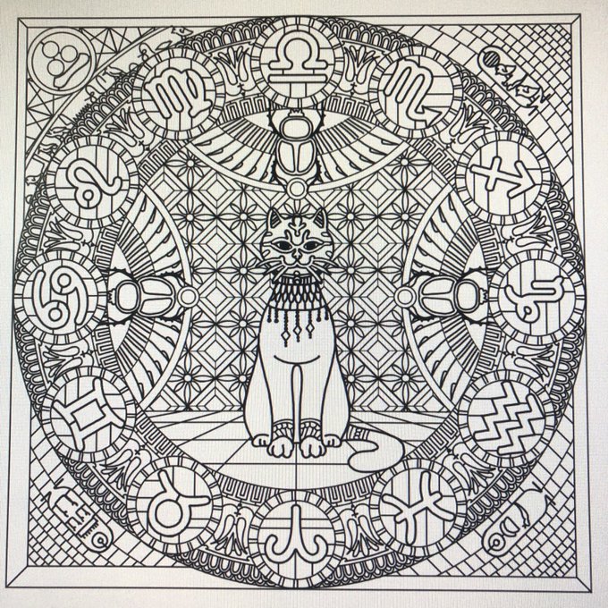 切り絵の下絵完成。 バステト神を中央に配する。エジプトがテーマ。 #猫 #切り絵