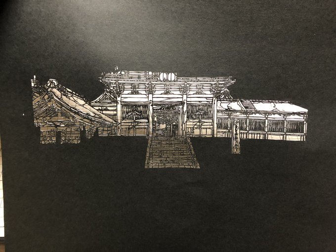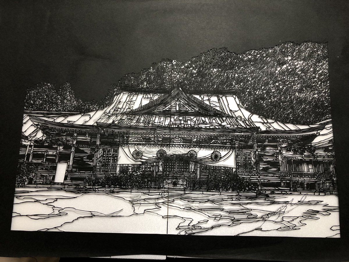とりあえず切り終わった内野大神宮。 次の作品は何にしようか。 #神社 #切り絵