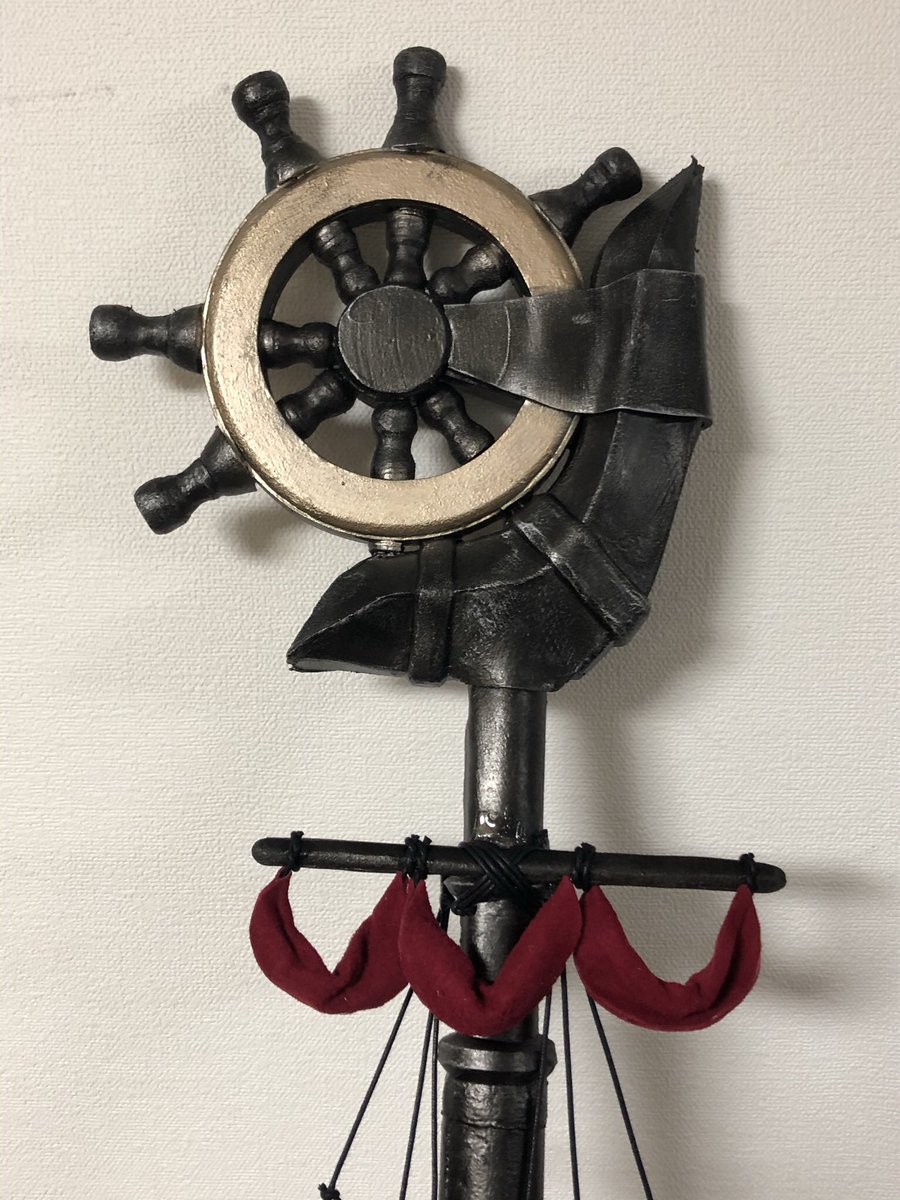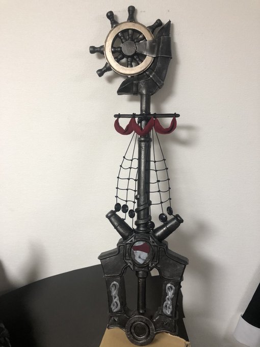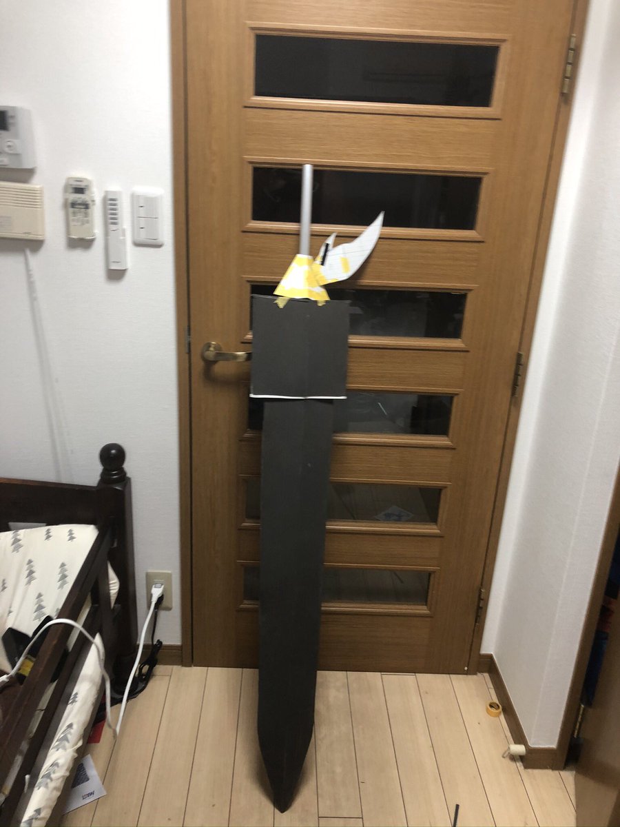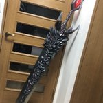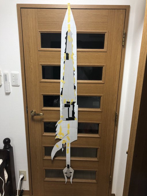 まだ細々と修正はするだろうけど DMC5の武器【魔剣ダンテ】無事完成!!!振り回せないけど片手で持てる! コスプレボードのハードタイプをメインで使い、アルミパイプを通してます。 柄頭の赤い宝石みたいなやつは下敷きをヒートガンで熱して型に押し付けたやつ×2を接着 #DMC5 #DMCcosplay