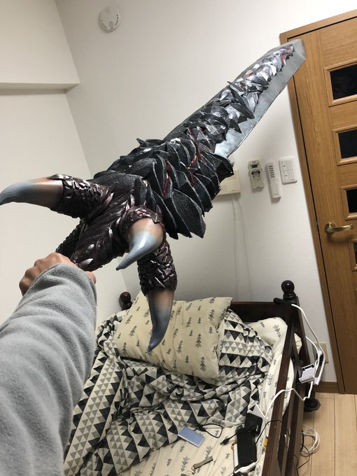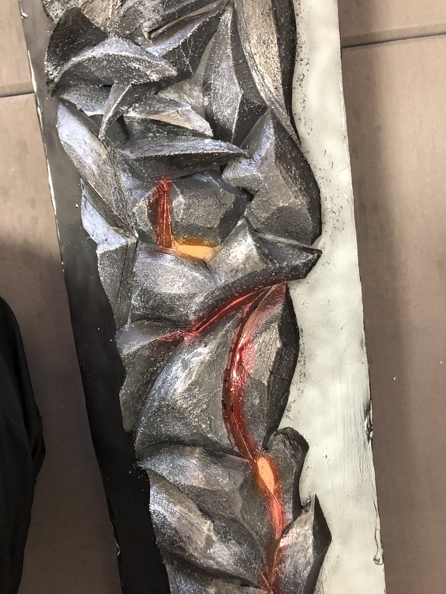 DMC5.魔剣ダンテ のっぺりした表面にしたくなくて何をしたかって岩っぽい所と見えてる模様、全部別パーツ。一個一個切って貼った。 今までの造形で頑張ってない事一度もないけど、それでも1番頑張ったと胸張って言える造形のひとつ。友人たちの言葉は僕の宝物です許しては置けない twitter.com/nabe_may_cry/s…