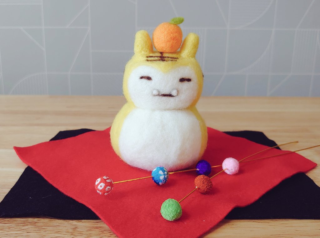 鏡餅カビゴン(寅年のすがた) #羊毛フェルト #ポケモン #羊毛ポケモン