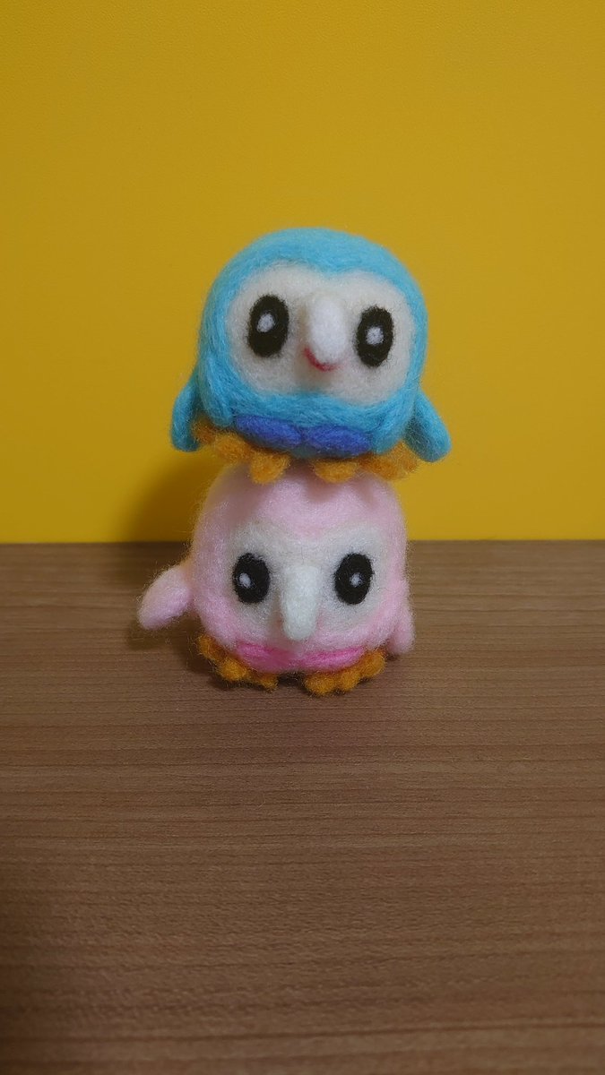2 6 母の作った色違いと好きな色モクローを見てください #羊毛フェルト #ポケモン #モクロー 22/04/04 13:13