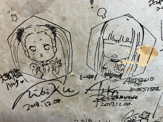思いもよらずなんかいろんな方々から反響いただいたので、仕事場の色紙置いておきます。 かれこれ20年ぐらい前の話です。 絵は相方が絵柄の方向性を問うために、先方に送ったテスト用のラフです。 twitter.com/i/web/status/1…