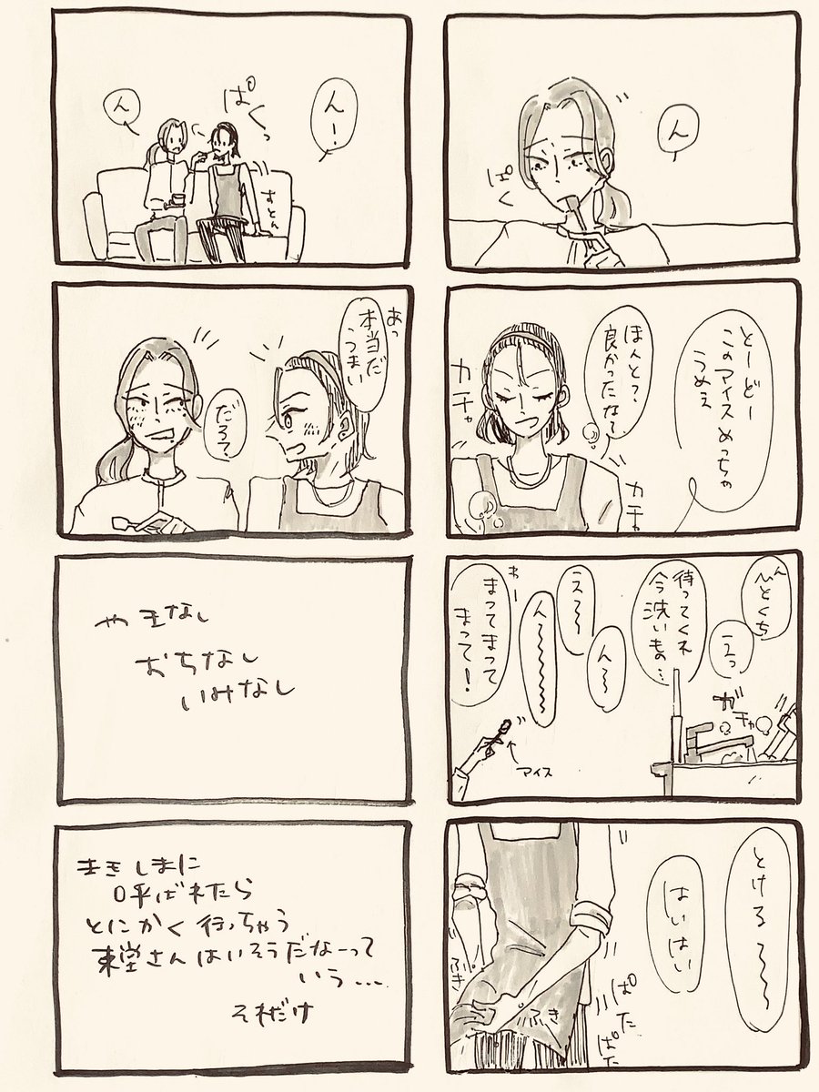4 41 落書き東巻~ 夕飯前にそんなもの飲んで!😠のとうどうさんと、あっちのアイスも買ってこーぜ😗のまきしま(謎シチュ) 23/02/24 17:45
