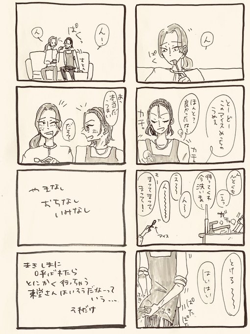 落書き東巻~ 夕飯前にそんなもの飲んで!😠のとうどうさんと、あっちのアイスも買ってこーぜ😗のまきしま(謎シチュ)
