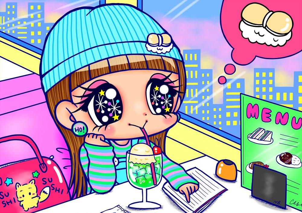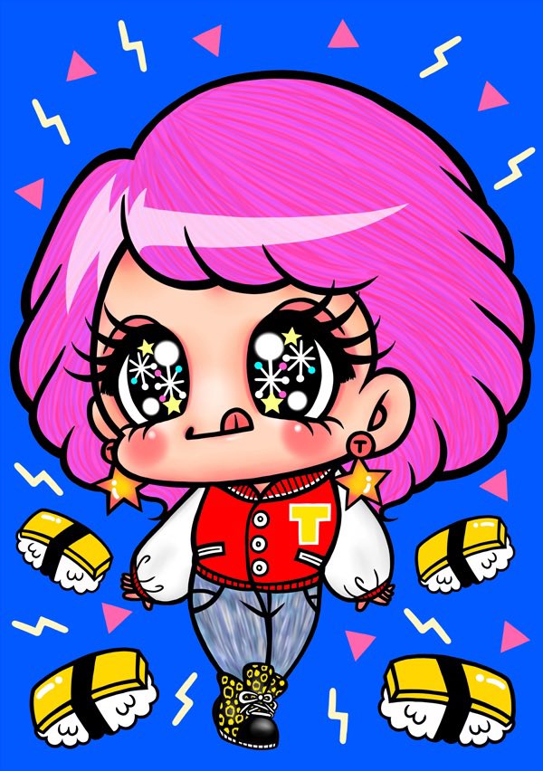 ちなみに今年のやえさんの 色紙用イラストはこんな感じ💁♀️ 今年はやえさんの ほわほわ〜っとした 可愛らしい女の子らしさを出したく マカロンや苺やキャンディなど 可愛いものを散りばめて、 背景の色合いは自分的に プリキュアをイメージしてみました😉 #うちやえゆかBDワンマンライブ #イラスト