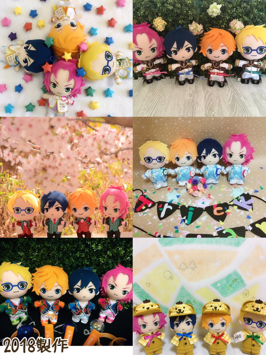 36 109 今年つくったトリスタ🌟のおべべ🍀😬 来年もお着替えのお付き合い宜しくね、ぬいスタくん🍀 (桜フェス、3周年、ポムスタ、3rdジャケ、サマーライブ、ウィンターライブ) #あんスタ手芸部 18/12/18 00:18