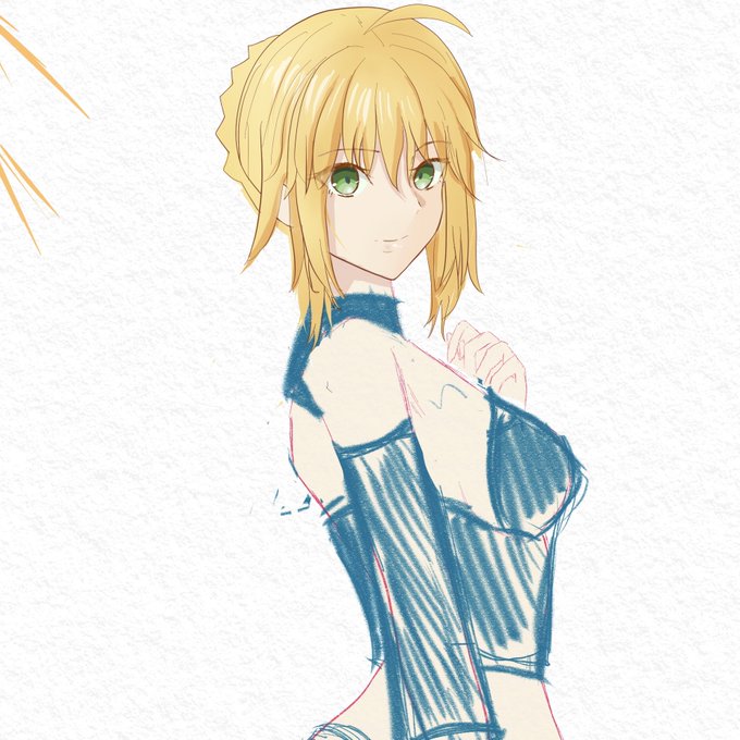 恥じらいセイバー(๑>◡<๑)顔の塗りとか線をを試行錯誤してた #イラスト #イラスト好きな人と繋がりたい #FGO #アルトリア・ペンドラゴン