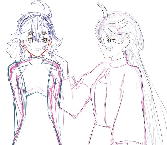 1 2 #イラスト #水星の魔女 見たいシーンのラフと線画描いてた〜😊 めっちゃ時間かかっちゃう〜 22/10/05 15:53