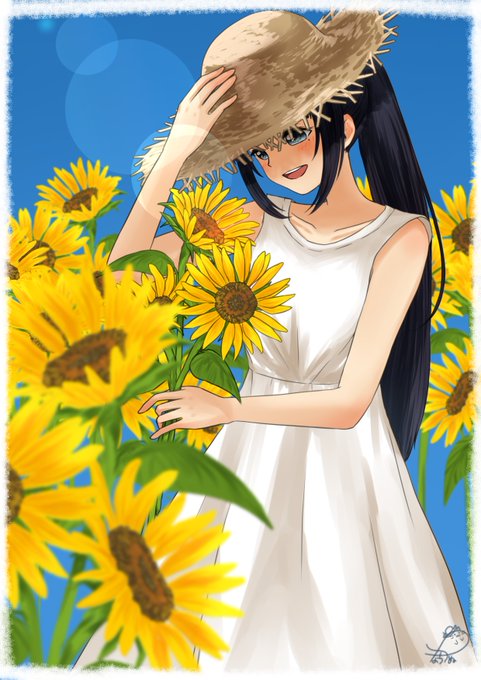 56 125 夏、向日葵、白ワンピ、君 #葵の絵 20/10/01 02:05