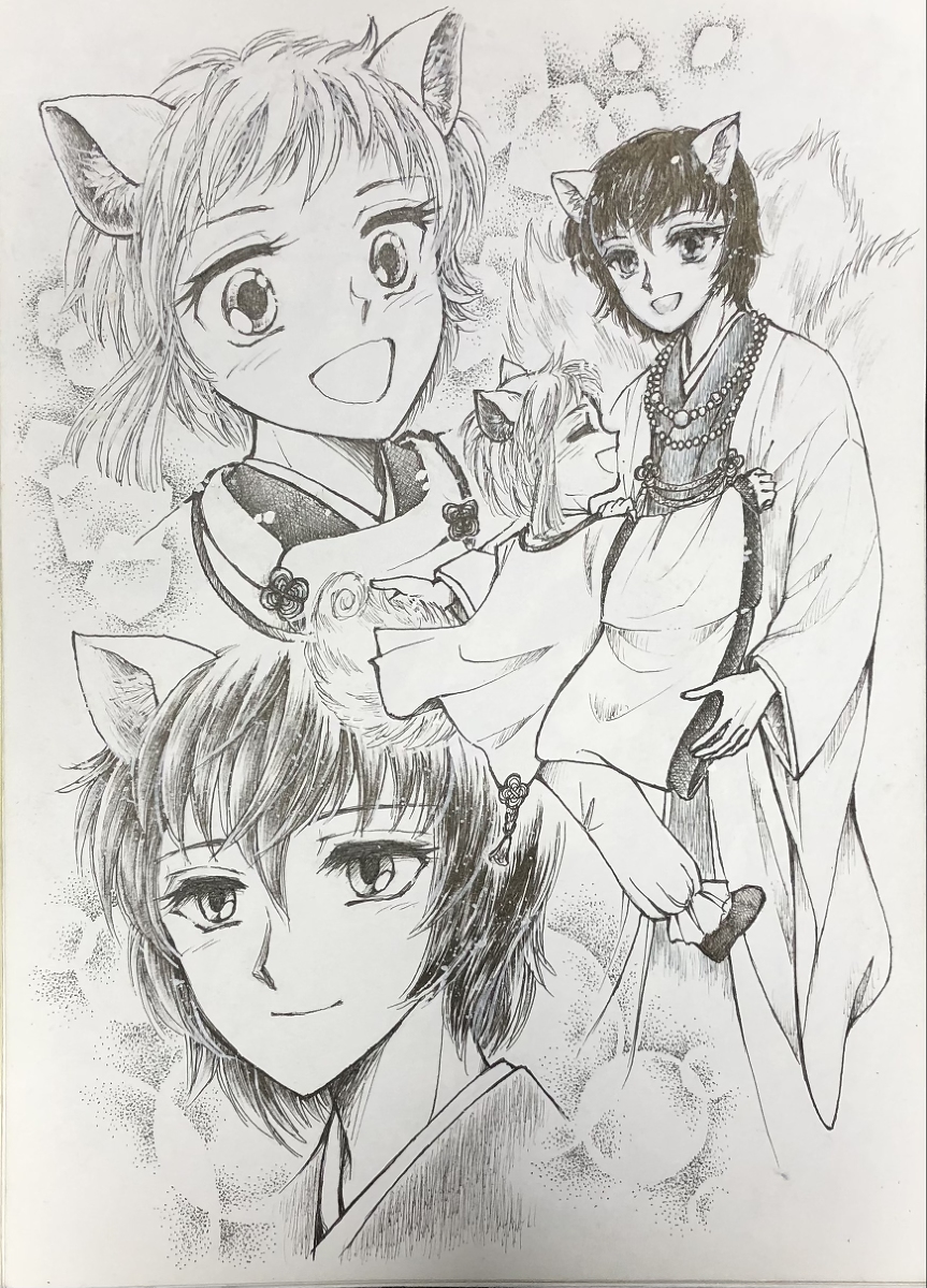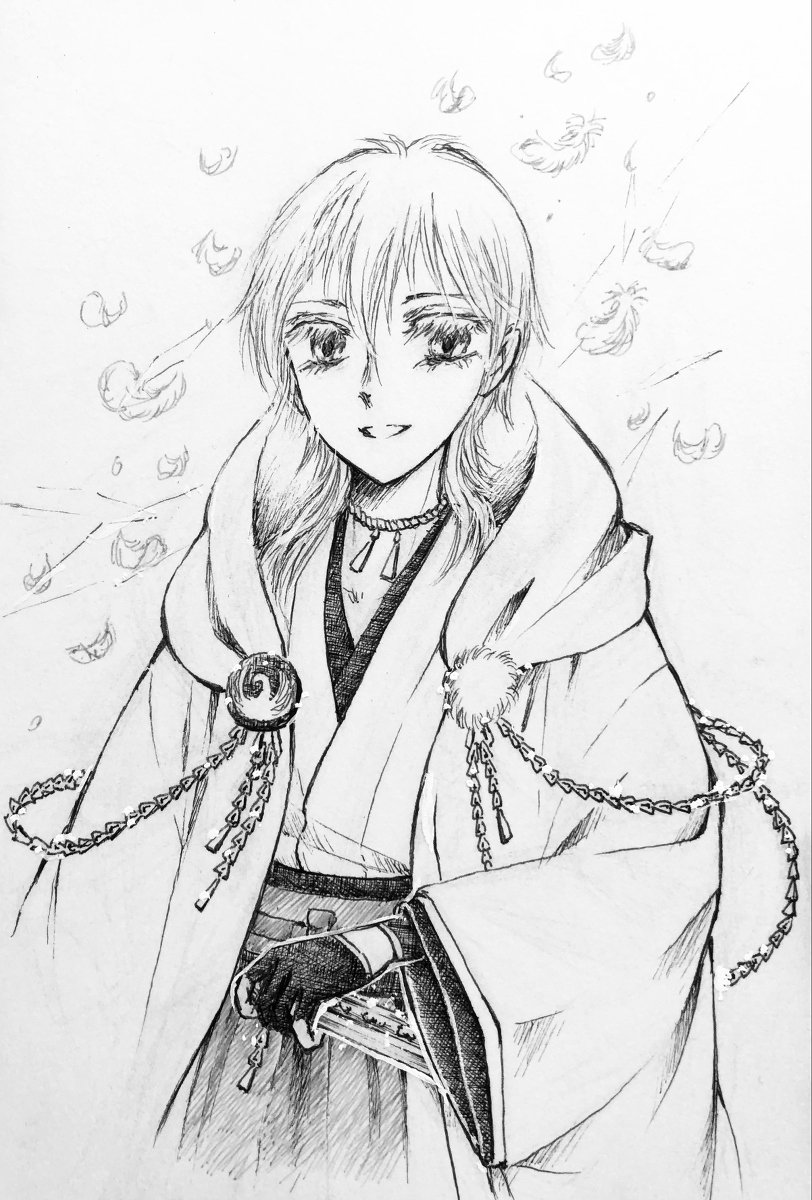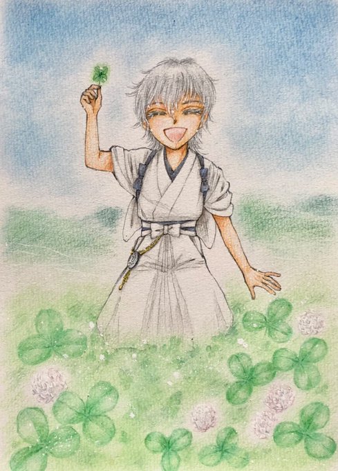 #鶴丸国永献上記念日2022 ……3日、掛かった…⁉️ ∑(゚Д゚) グルグル 💫 遅くなって、ごめんなさい🙇♀️ 2日遅れたケド⤵️ も一度『おめでとう』鶴さん🕊💞 ……もっと、練習、しますっ⭐️ _φ((・_・))) カキナレタイ !!! #アナログイラスト #色鉛筆