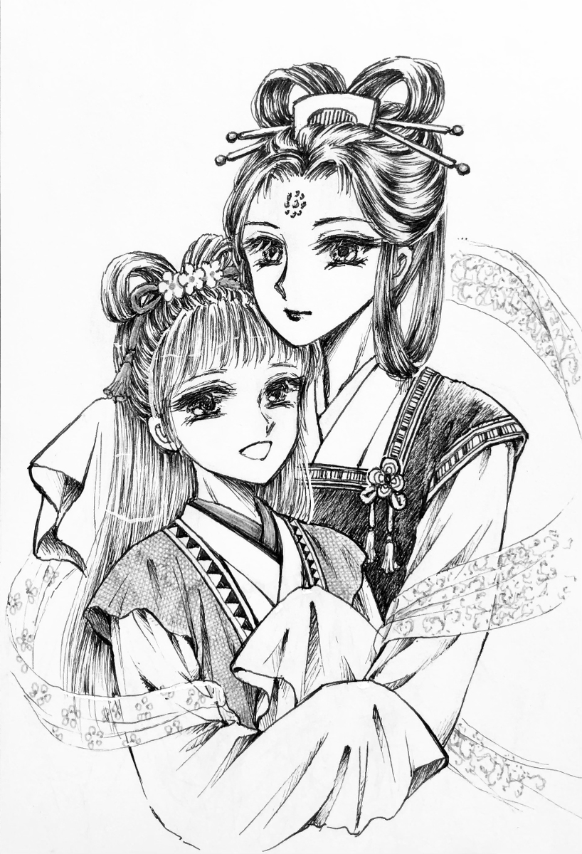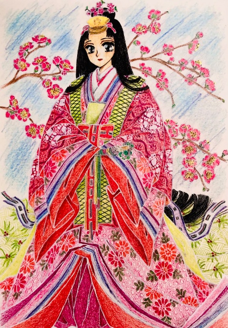 #過去絵を投げて絵を描いた気になろうキャンペーン むしろ、過去絵しか、ない‼️ (威張るな?) 平安装束の色重ねが思い通りに塗れたり 模様が描き込めたり出来たら《楽しい》💞 #アナログ画 #色鉛筆