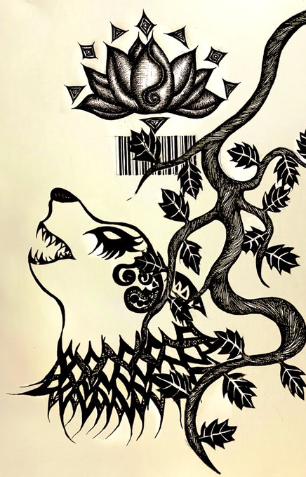 #VitalityLine #ペン画 #制作過程 大まかな所や変更しそうな場所は下書きあり、模様所は1発描き。椿みたいなイメージ