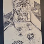 0 5 #ペン画 某所にさりげなく期間限定で展示されてる笑。空間のちょっとした刺激を…笑 20/11/02 22:16