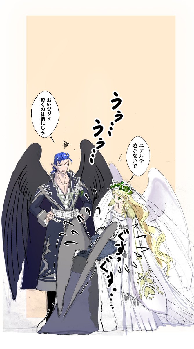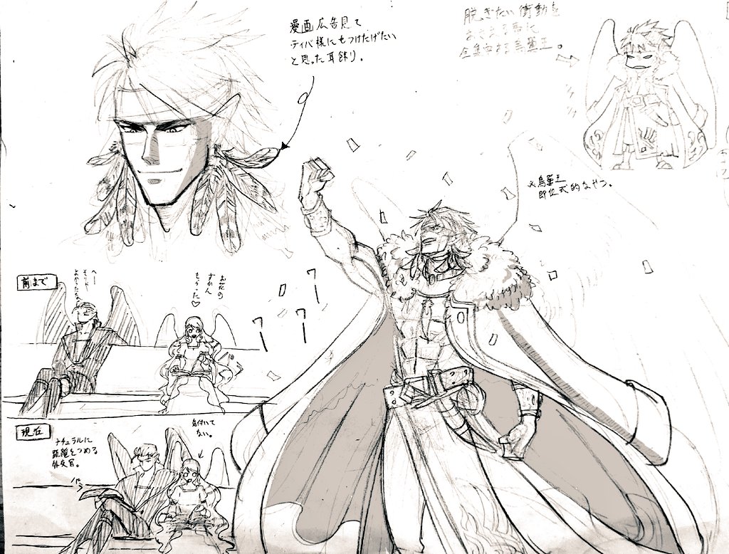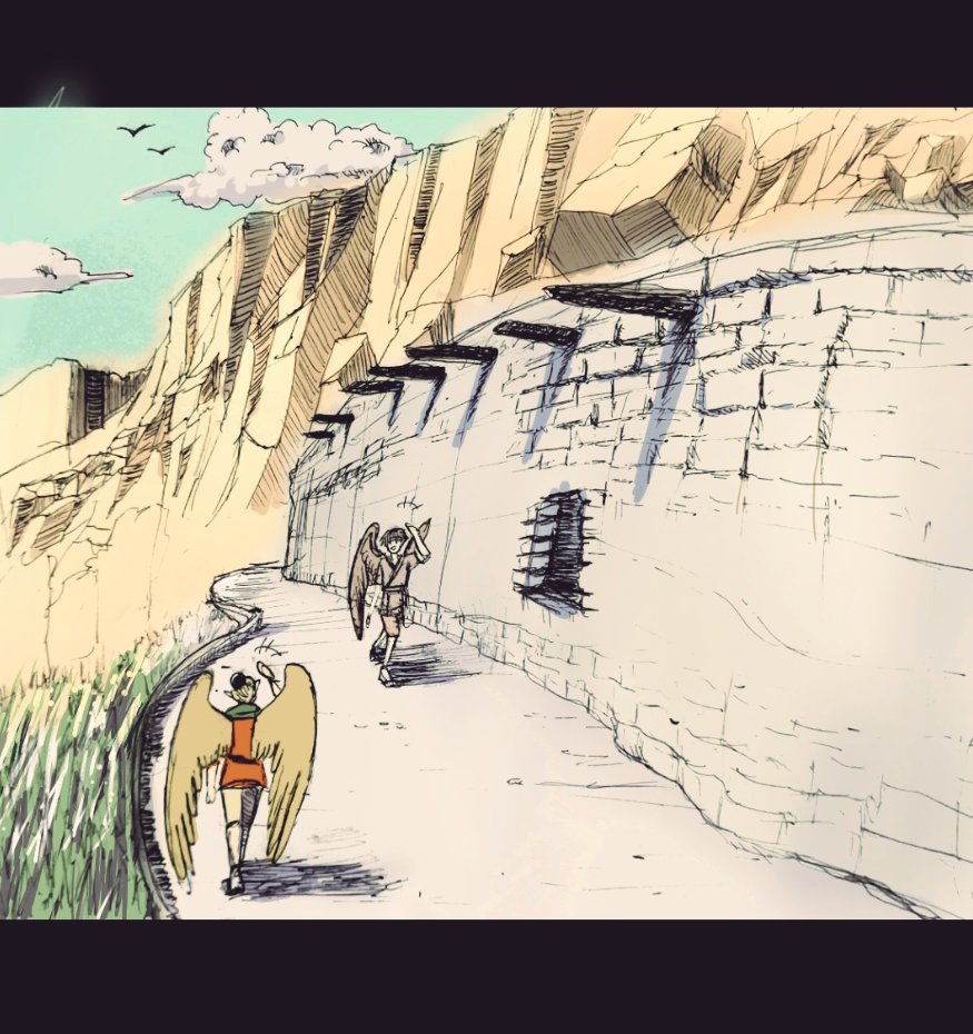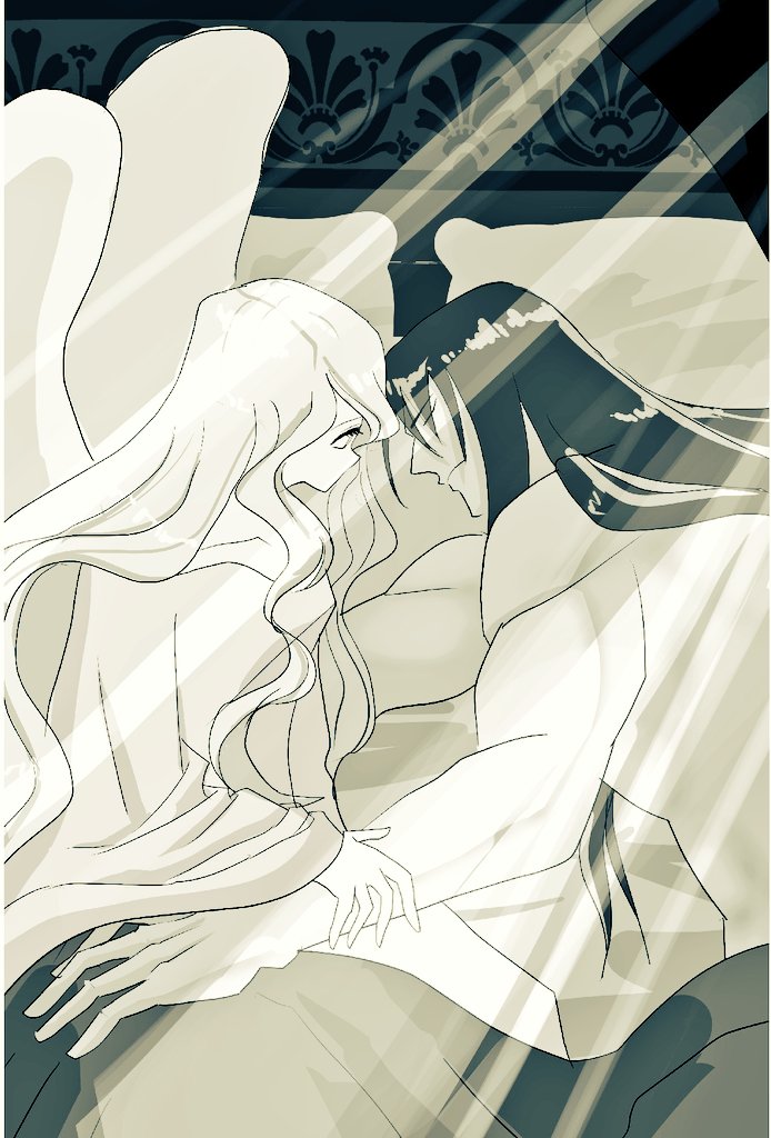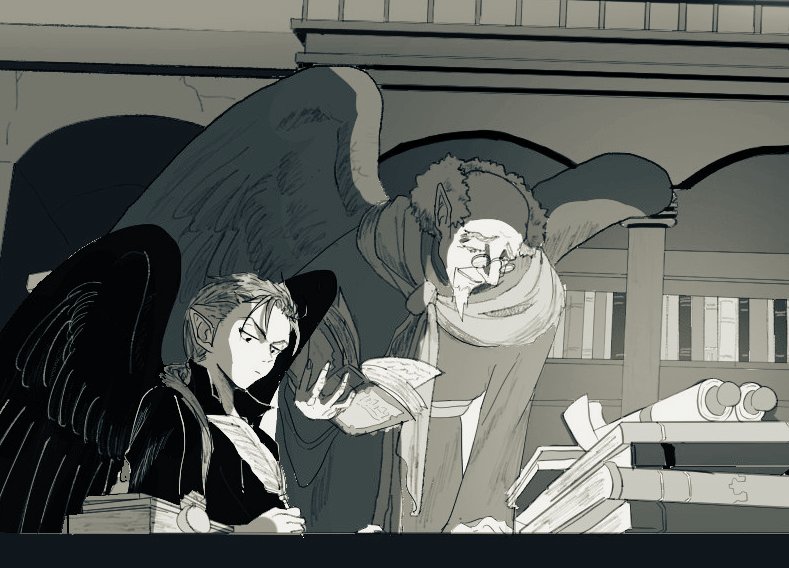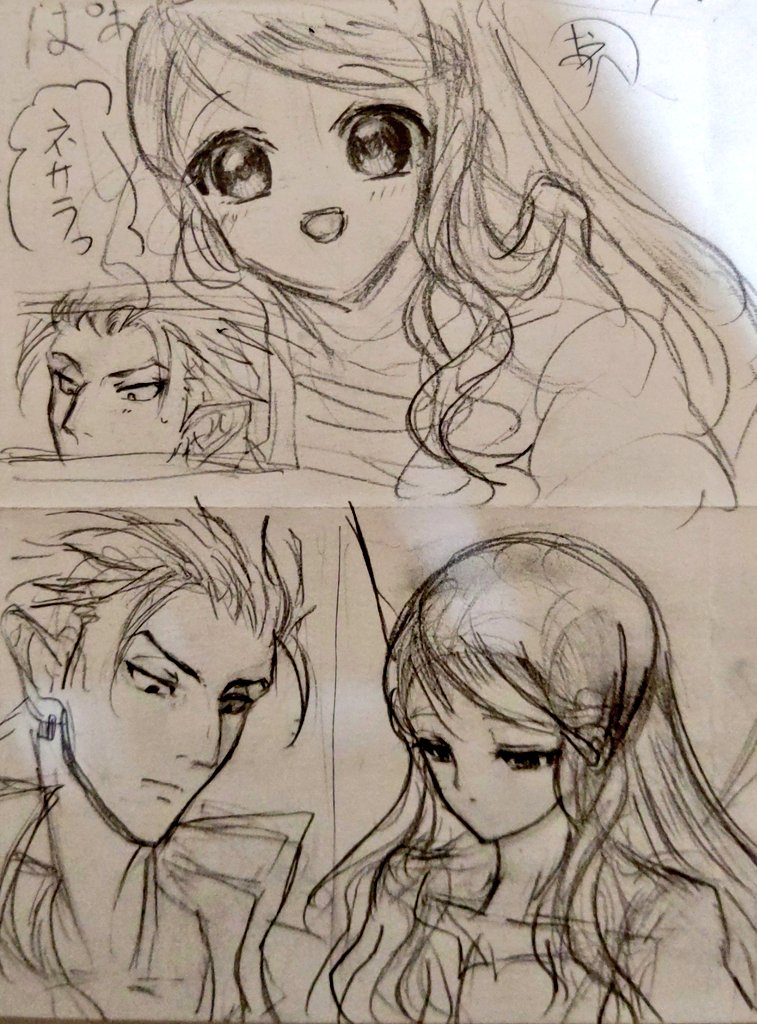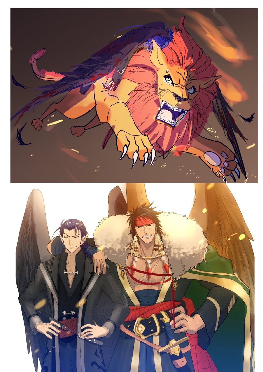 #今月描いた絵を晒そう アニメ塗りのペタッとした絵が好きだけど、ティバとネの絵はグリザイユ塗りで頑張ってみた。あと色塗ったら完成!じゃなくて最後に仕上げ加工するという概念を知った。 9月は背景描けるようになりたい。 絵にしたい場面が暁で多すぎるの・・・