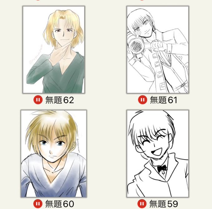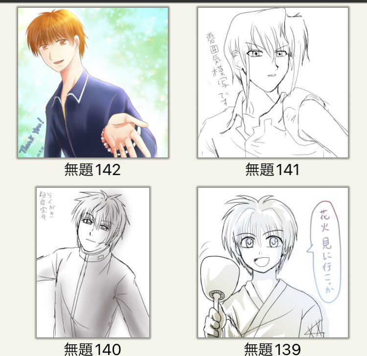 #今月描いた絵を晒そう ちょっと早いけど。 もう今後はイベントに向けての絵しか描かないと思うので。 3月頭は、呑気に真選組とかWeiβ描いてました。 今追い詰めらることも予想せずに…(闇) 下から。 謎アイコン、オミ、沖田、ヨージ、土方、けん