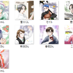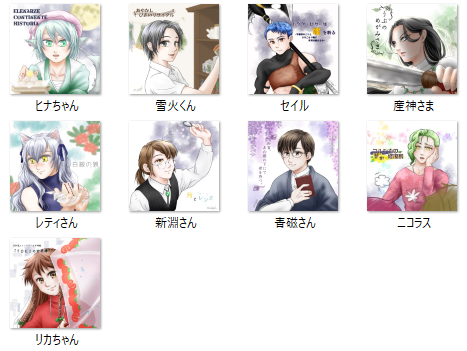 #今月描いた絵を晒そう 今月は1年分描いた気がする。 セイルとニコラスだけ呼び捨てなのは、それだけ親近感があるということで……ごにょごにょ……敬称付けると逆に他人行儀なキャラっているよ……ね?