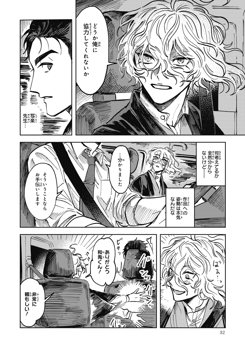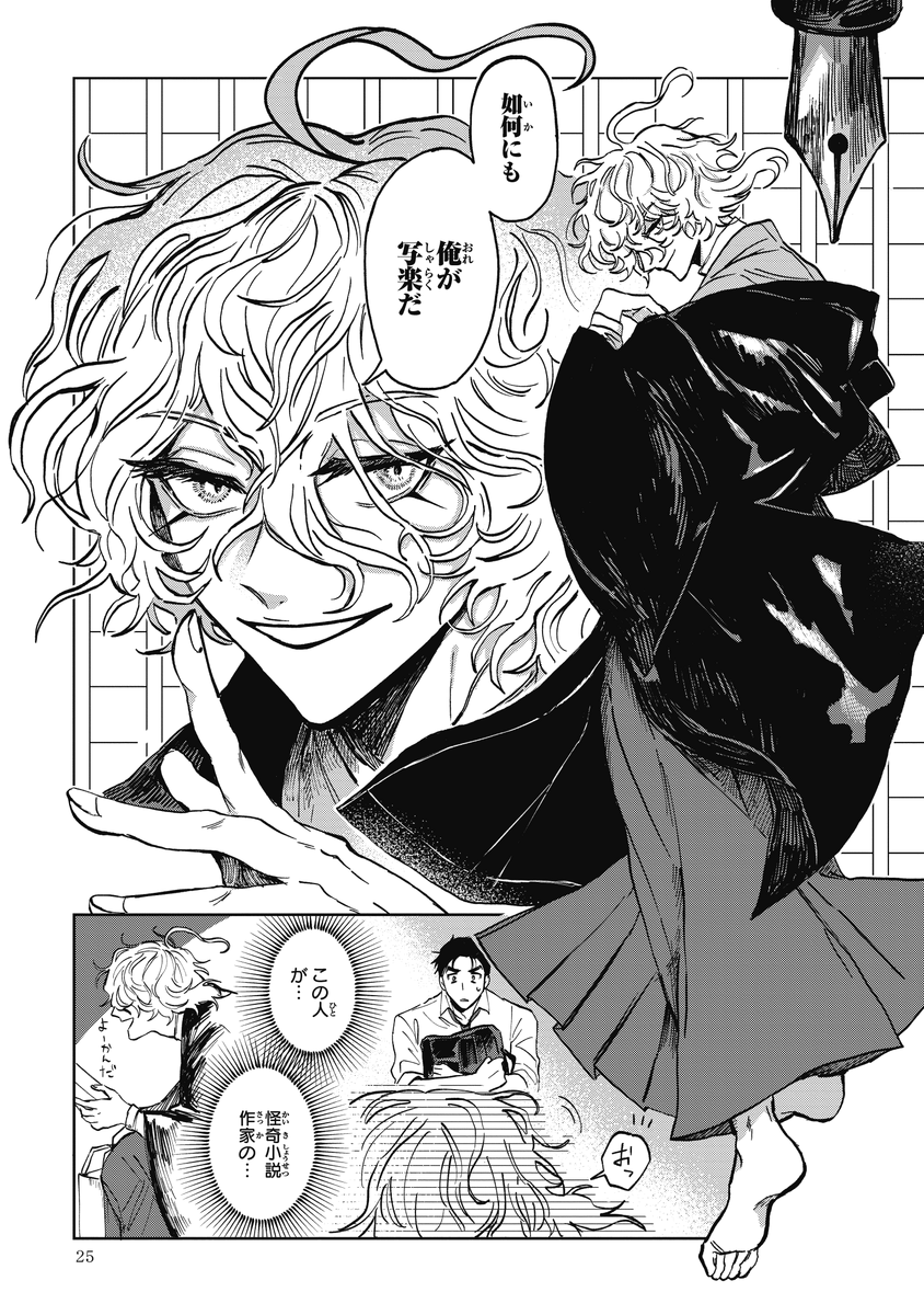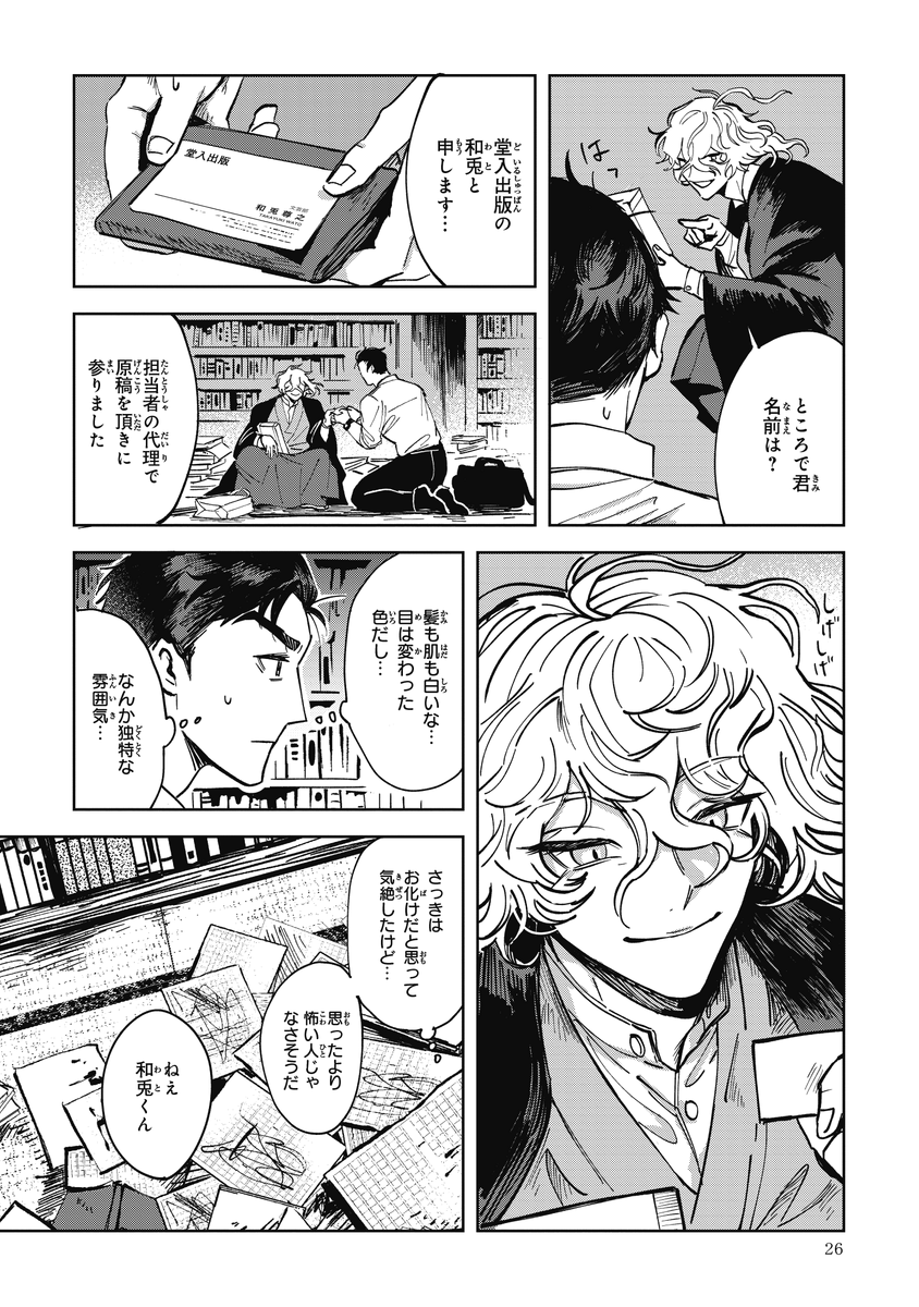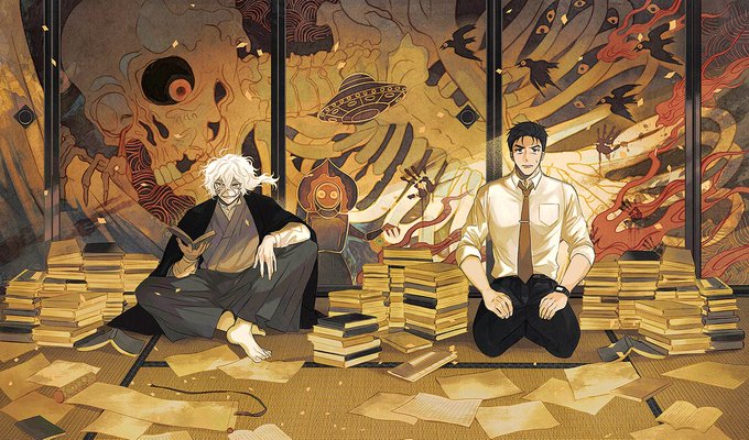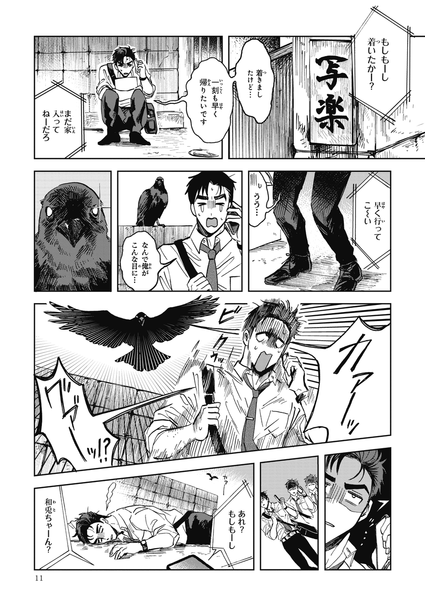 『シャラクナ-怪奇心霊見聞録』こんな感じの男二人が駆け回ってる漫画です。人生初のコミックス化でドキドキですが、楽しんでいただけますと幸いです。