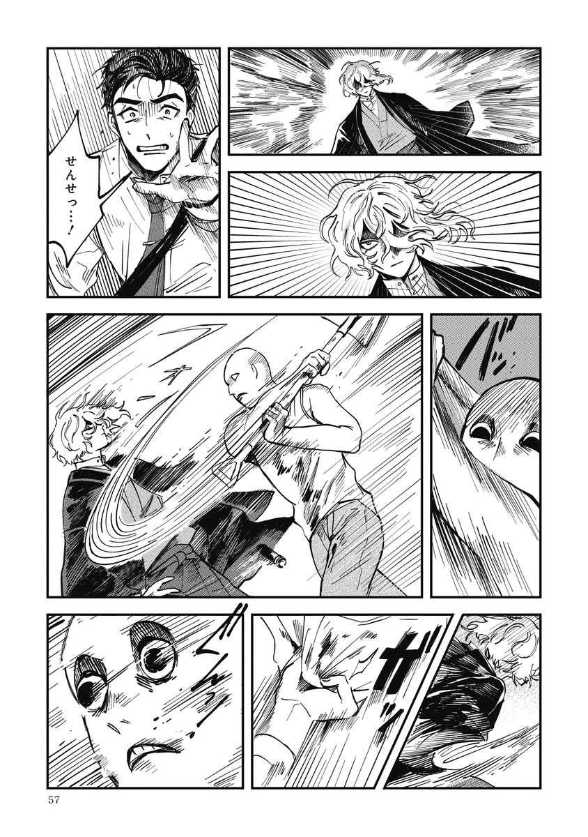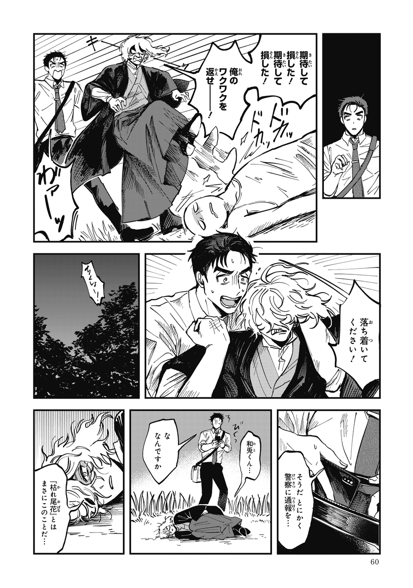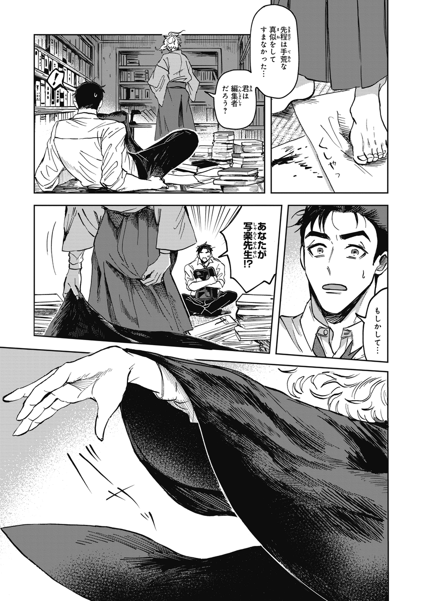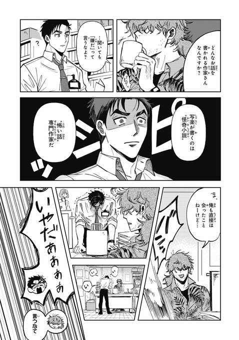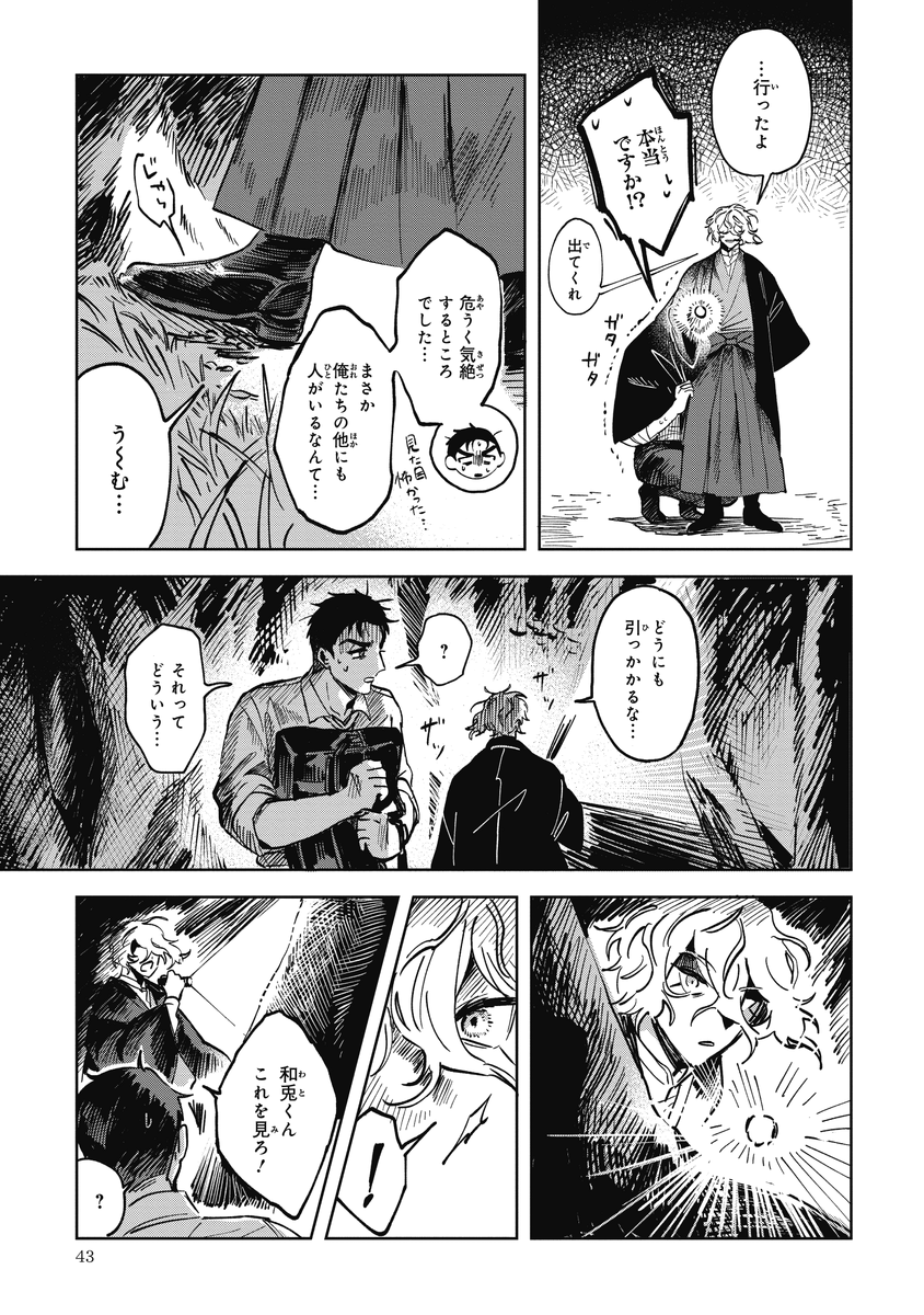95 402 『シャラクナ-怪奇心霊見聞録』こんな感じの男二人が駆け回ってる漫画です。人生初のコミックス化でドキドキですが、楽しんでいただけますと幸いです。 22/10/23 21:39