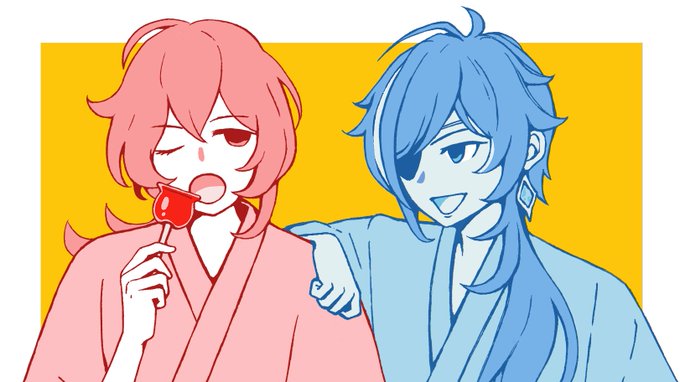 アップルサイダーからりんご飴! #イラスト #原神 #GenshinImpact #fanart #ファンアート #ディルック #ガイア #浴衣 #原神イラコン夏FA #AdobeFresco