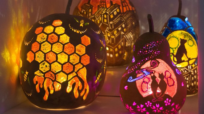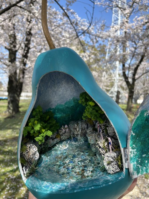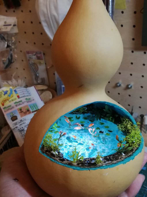 #ゴールデンウィークSNS展覧会2023 素敵なタグありがとうございます🙇♂️✨ ひょうたんの中に小さな不思議な世界を閉じ込めたり、ステンドグラス風ひょうたんランプなどを作製している、ひょうたんすみじろうと申します。こちらで販売、オーダーもやっています minne.com/@kuwayama0512