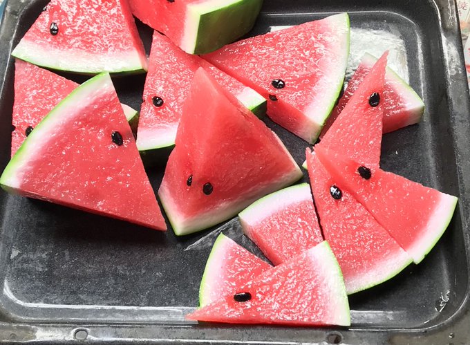21 133 この西瓜🍉いったいどのような商品になるのでしょうか? #食品サンプル #ながお食研 #西瓜 #スイカ 22/05/29 07:52