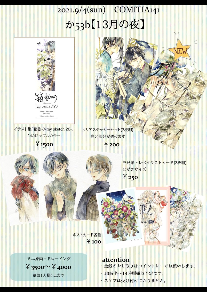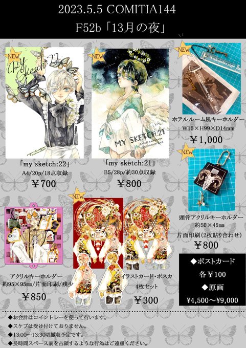 #COMITIA144 お品書きです。 スペースは【F52b】です。 「my sketch:21」は2022.11発行ですが自家通販以外では初売りとなるので新刊扱いとしています。 13:00~13:30頃の撤収予定。 どうぞよろしくお願いいたします。 #コミティア144 #コミティアお品書き