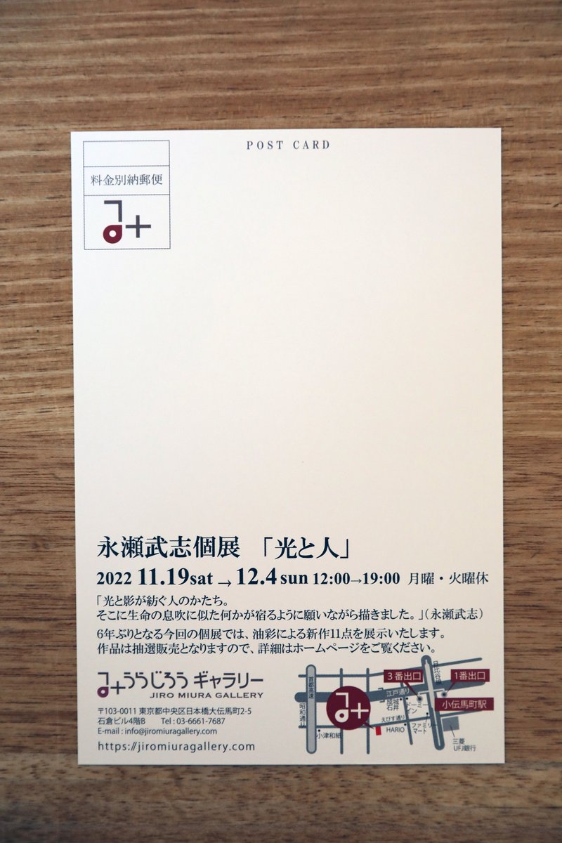 本日から、油絵の個展を開催しています。 お近くにお出かけの際はぜひお立ち寄りくださいませ。 永瀬武志 個展『光と人』 みうらじろうギャラリー 東京都中央区日本橋大伝馬町2-5 石倉ビル4F 2022.11.19-12.4 12:00~19:00 月曜・火曜休 jiromiuragallery.com