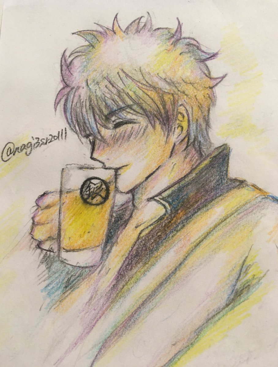 1 10 #gntm_odai お題「ビール」 以前落書きとして描いていた坂田銀時に色を付けての投稿 (お酒を美味しそうに飲む人を参考にしてます) 21/04/18 00:41