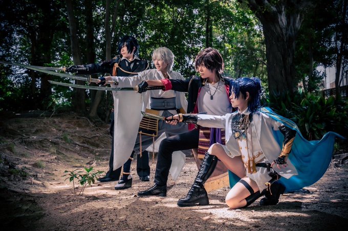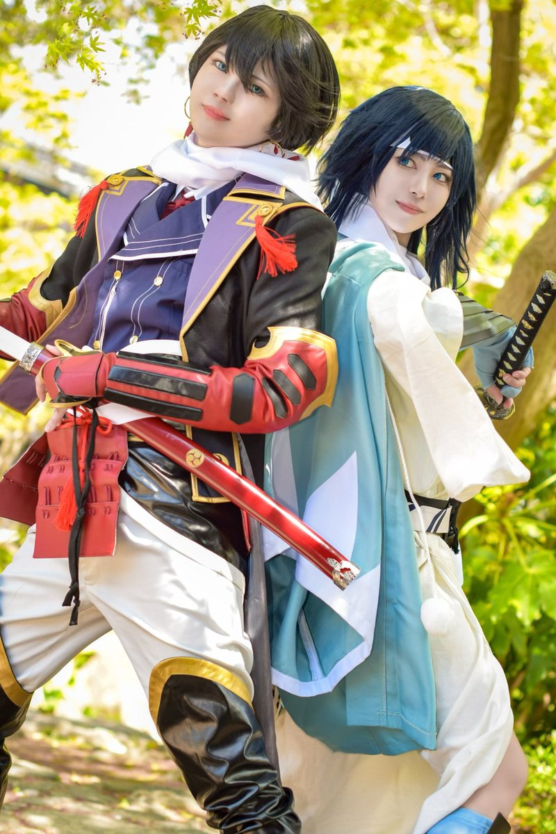 cosplay /刀剣乱舞 夏遊び 加州清光 紅音さん@akane_8991132 大和守安定 @nagi_oina 📸夜さん @jinyinyin1 撮影地 @tunagarichaya #令和五年軽装併せ初夏の陣 #つながり茶屋縁