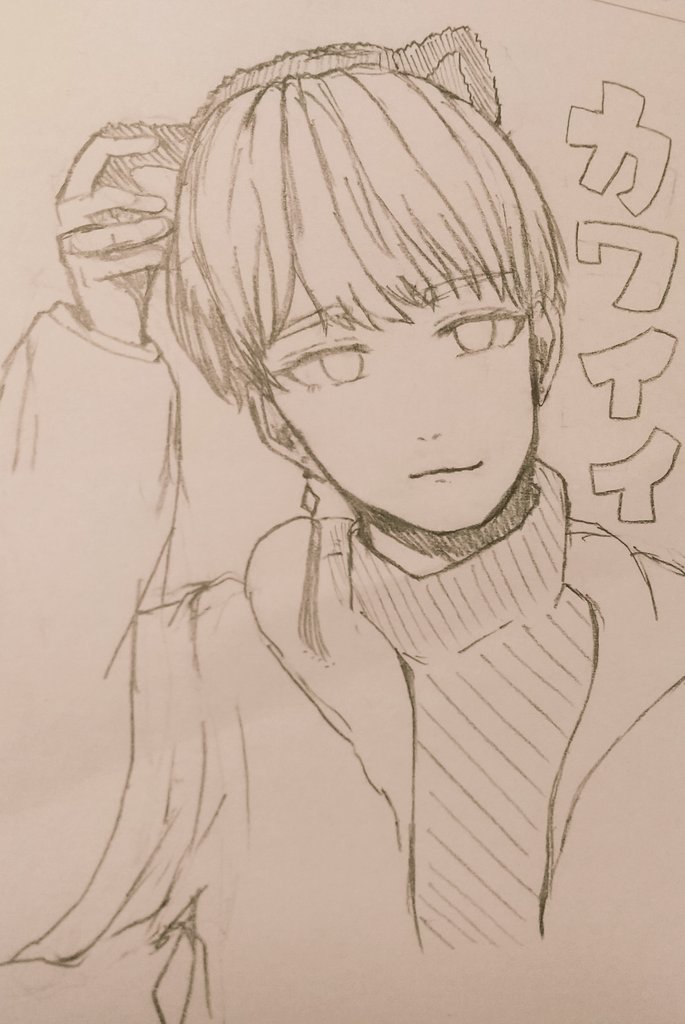 クールだけどあざとめな男子😍 安定の授業中の産物(´▽`) '` '` '` #イラスト練習中 #絵描きさんと繋がりたい #イラスト #猫の日