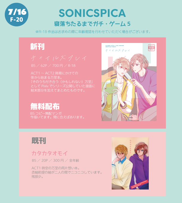 あなたのサークル「SONICSPICA」は、コミックマーケット102で「土曜日 東地区 “P” ブロック 54a」に配置されました!コミケWebカタログにてサークル情報ページ公開中です! webcatalog.circle.ms/Circle/Map/173… #C102WebCatalog これは真冬に震えながら描いた夏のたーつむ