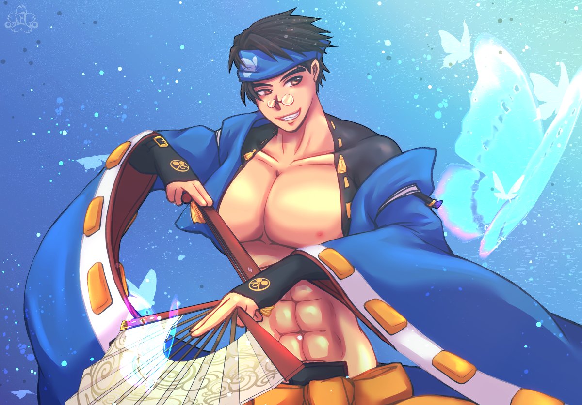 『フォロワーの絵描き合いっこ大会』 朔助さん( @NienSakusuke)のにょたい闇慈を元に描かせていただきました! 花びらと、疾抜きも一応!