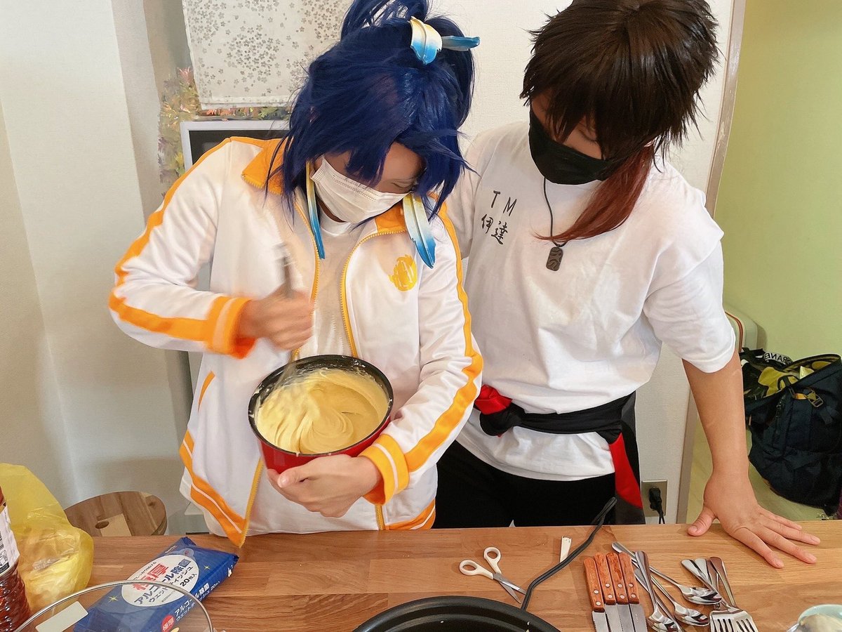 【Cosplay/刀剣乱舞】 ⚠️注意⚠️捏造衣装⚠️ 感染症対策しています ー伽羅…卵の割り方おかしくないか…?ー ー貞は混ぜるのが早いな…ー 大倶利伽羅 桜井あきとさん@bitter_orS 太鼓鐘貞宗 凪砂 Photo カナメさん@kanamepollux78 #カナメフォト