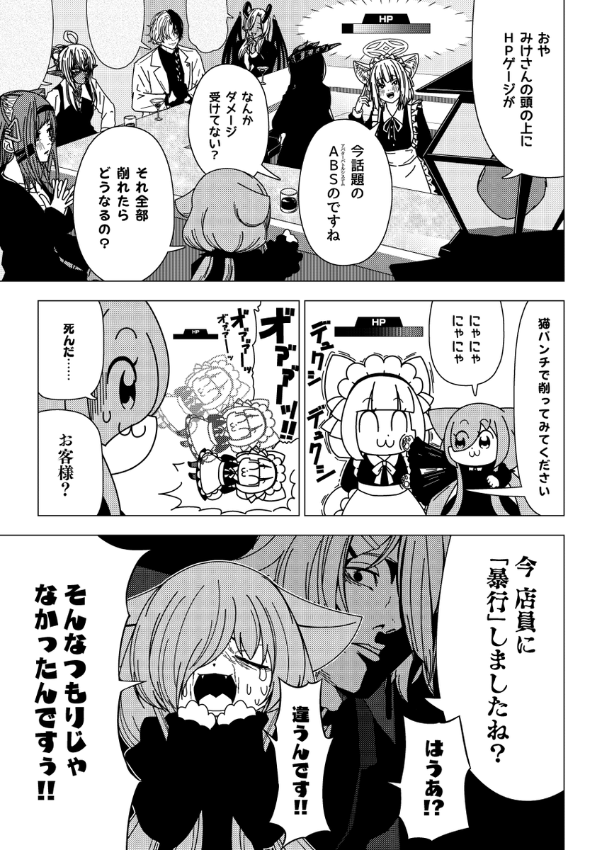 漫画BarChampagneFox十六夜目 酒場には多種多様な種族のお客様がいらっしゃいます。 太陽、狐、狸、犬、猫、鬼、ドラゴン、メカ、etc...... そして人間……にんげん……? #VRC_Bar酒狐 #マンガ_Bar酒狐 #VRC漫画