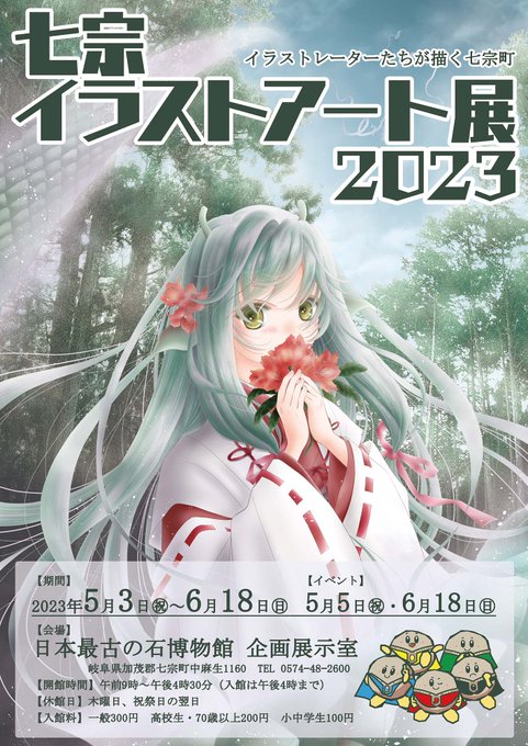 #七宗イラストアート展 在廊してます! 遊びに来てください😊💕 新作ポストカードセット100円 小説モリウサギ1600円 2022岐阜イラストアート展タペストリー1800円 ……こっそり展示作品と同じ刷り出しも無料配布しますw