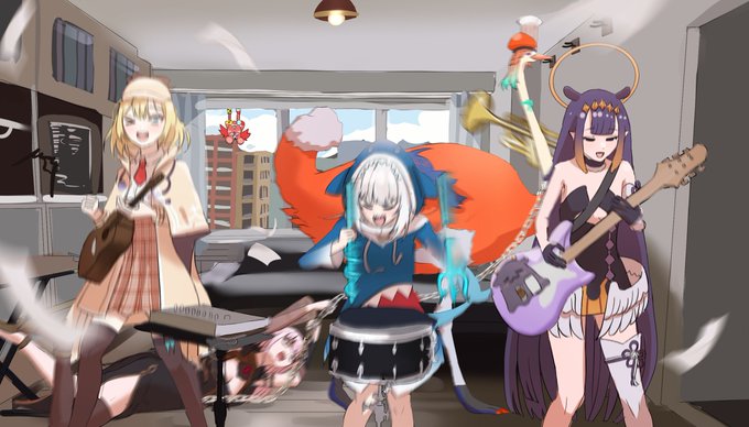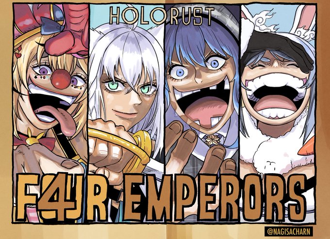 358 1838 #自分の代表作だと思う絵を一枚だけ選んでみよう ホロ鯖Rustの四皇パロディのやつ。あの時の盛り上がり凄かったですね 23/06/06 11:37