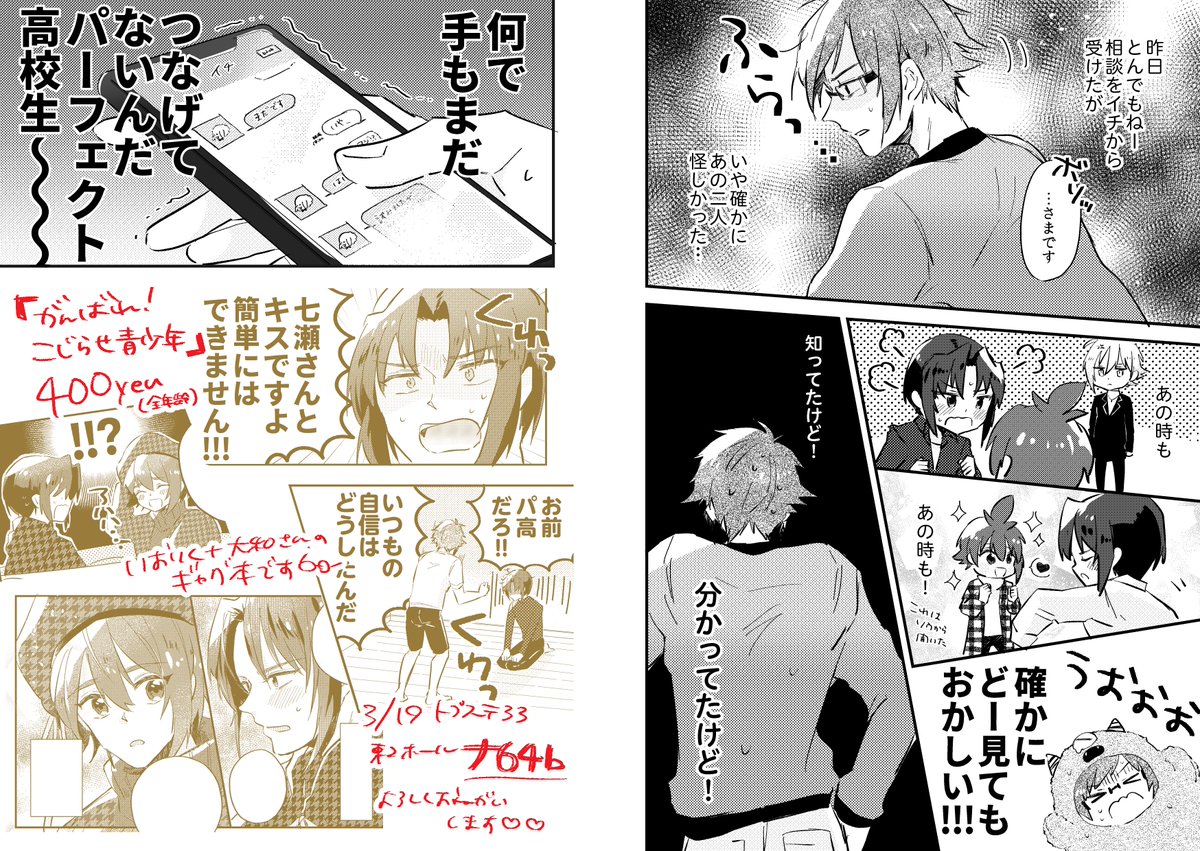 【3/19春コミトプステ新刊サンプル】 東2ナ64bコマンドオール 「がんばれ!こじらせ青少年」 いおりく/24P/全年齢/400円 二階堂大和巻き込まれ本です🐰🍓 支部:pixiv.net/artworks/10624… よろしくお願いします!!