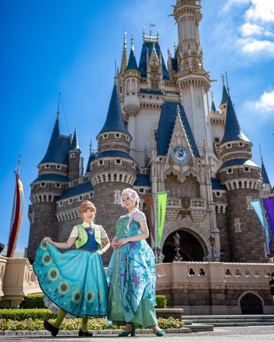 12 92 エルサのサプライズ🌻 身軽でたのしい😍✨ 📸⇨ @kanaria_ph 最高すぎるお写真ありがとうございます😭👏✨✨✨ エルサ⇨ @yuakapi アナ⇨凪 #Dハロ仮装 #Dハロ仮装2022 22/09/25 19:30