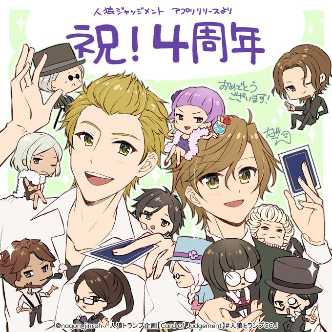 ♠♥ #人狼トランプCOJ 企画 ♦♣ アプリリリースより祝!4周年‼️ おめでとうございます!✨✨ そして、いつもありがとうございます…!! このゲームに出会えて、本当に幸せです☺️ #人狼J4周年カウントダウン #人狼ジャッジメントイラスト