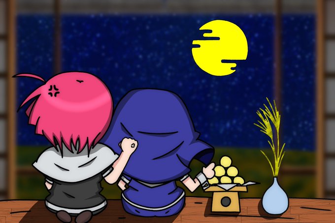 16 29 #リリパナイワンドロ お題「お月見」 お月見している師匠と愛弟子です。 ちょい遅刻失礼しました。 22/09/24 21:05