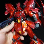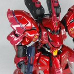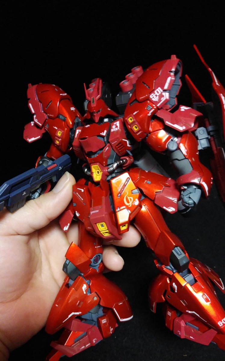 RGサザビー完成しました とりあえず赤は艶あり塗装コンパウンドで磨きと、黒やフレーム部は艶なしで仕上げ 以前知人の作ったMGサザビーが艶々でカッコよかったので、今回作ってみたかったRGでやってみました #ガンプラ好きと繋がりたい #シャアの日
