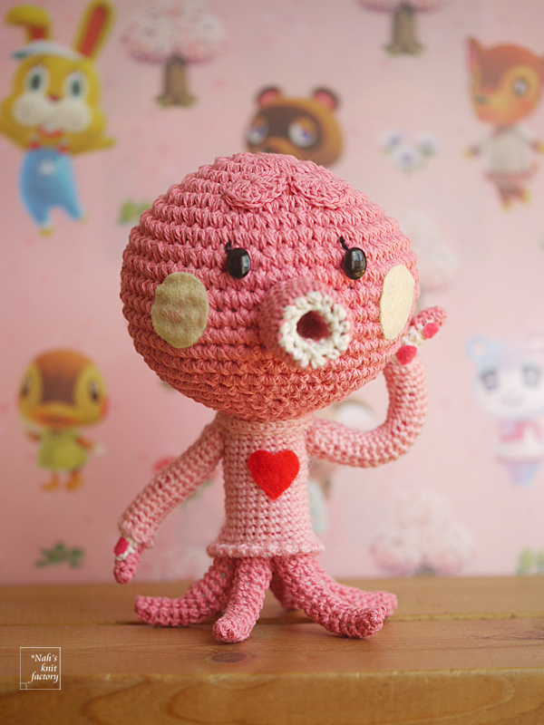 久々に休みがあったので、久々に #あみぐるみ を作りました。 #あつ森 のタコリーナちゃんです。 この子はかわいくて、話したり島で過ごしている姿を見たりすると、いつも癒やされます☺️ いろんな服が似合うから迷ったけれど、ハートのセーターを着せてみました、きゃ。
