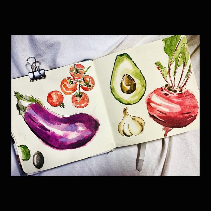 5 21 🍆🍅🫒🧄🥑 (右なにこれカブ?) #水彩画 #イラスト #絵描きさんと繋がりたい 21/07/03 04:20