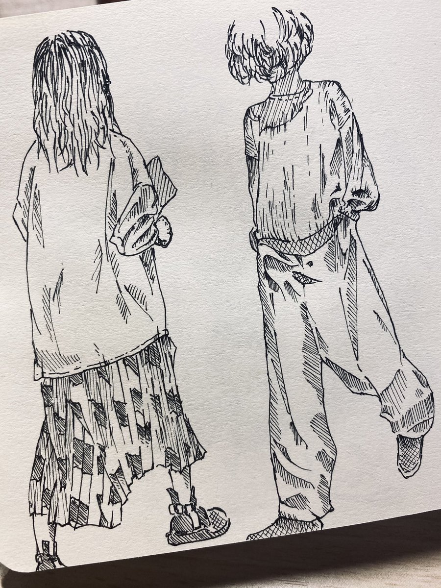 即席デッサン🍧夏服 #イラスト #ペン画 #絵描きさんと繋がりたい