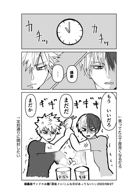 #爆轟版深夜の真剣60分一本勝負 お題︰「元気づけたい/俺なりの愛」 遅刻参加&タイムオーバーすみません! 運営さんいつもありがとうございます! 仮免補講あたりで、寄り添い方を思い悩む🍰と最上級の賛辞を送る💥です