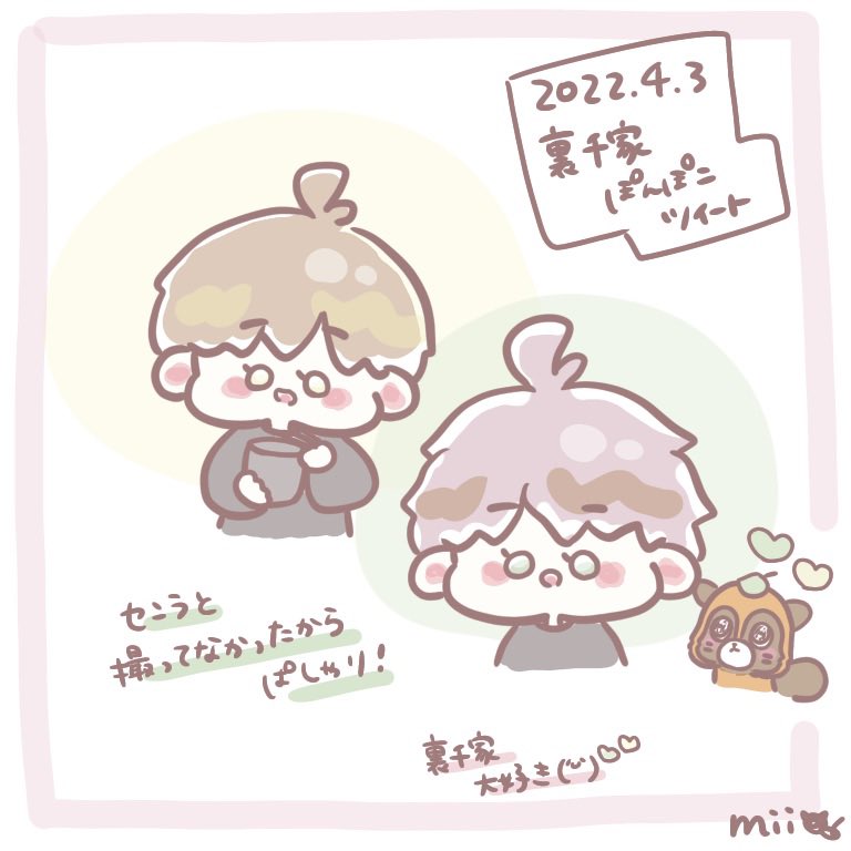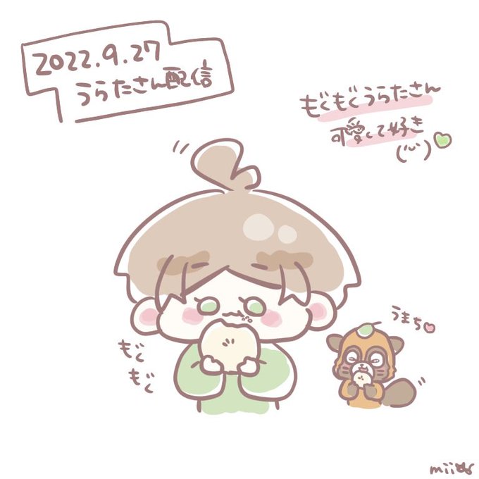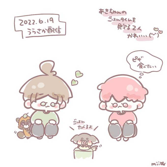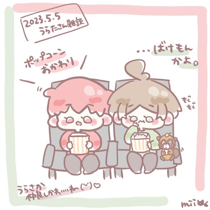 裏千家待ってました💚💛 わ!って驚いた表情のうらたさんとなんか食べながらにっこりなセンラさんのお二人の2ショット!!! 可愛すぎました 裏千家たすかります大好きです ( ¨̮ )💚💛 #うらたぬ王国の美術館 #センラの絵ぇやん