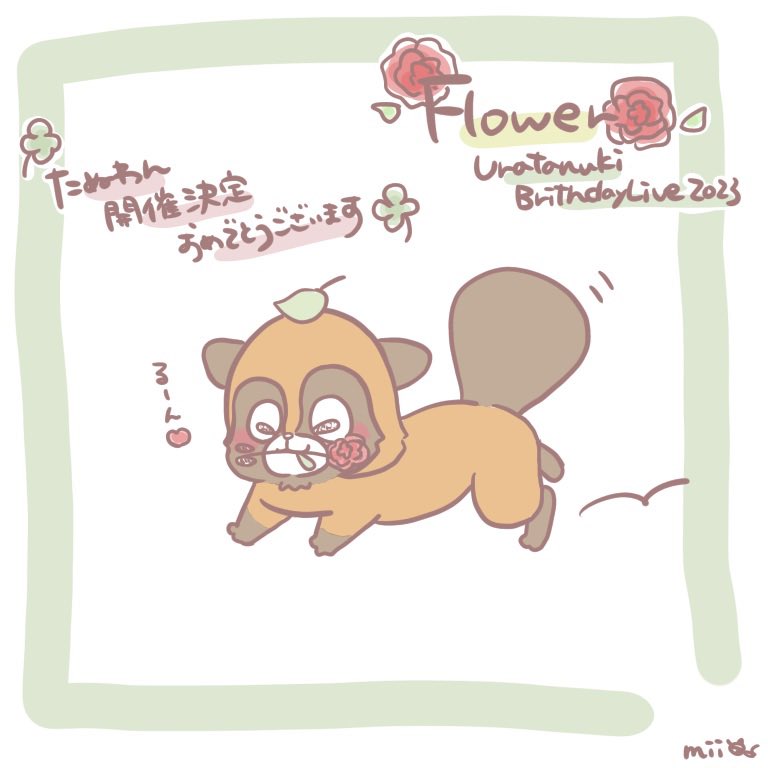 遅くなりましたが たぬわん開催決定!!!! おめでとうございます🍀𓈒 𓂂𓏸 ❁Flower❁ バラくわえてるやまだぬきちゃん かわいいです♡♡♡ たぬわん楽しみー! 会いにいけますよーに🫶🏻💚 #うらたぬ王国の美術館