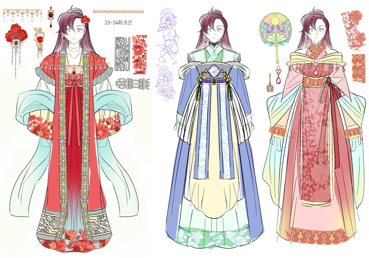 <아기 후궁님은 조용히 살고 싶어> 24화~ 27화의 의상을 공개합니다~! 이번 회차에 등장하는 의상 디자인도 원고에서 아주 아름답게 완성 되었어요! 🥹🌸🌷🌼🪷 page.kakao.com/content/614836… 해당 디자인은 24화 부터 확인해보실 수 있습니다! (늘 멋지게 완성해주시는 팀원분들 너무 감사합니다^^b)