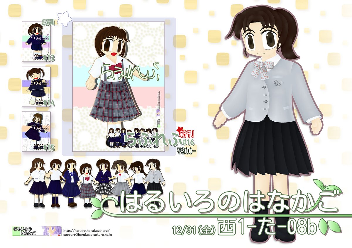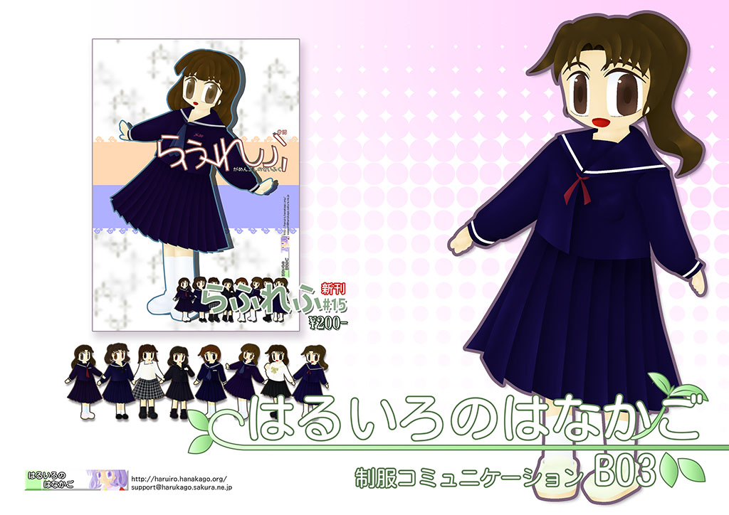 #制コミ の新刊、なんとか仕上がりました。配置はB03「はるいろのはなかご」です。 まだ印刷・裁断・綴じと作業は続きますがなんとか間に合うはず(>< 今回の掲載内容はこんな感じになります(サークルカットは既刊誌掲載の内容となります)。 #制服コミュニケーション